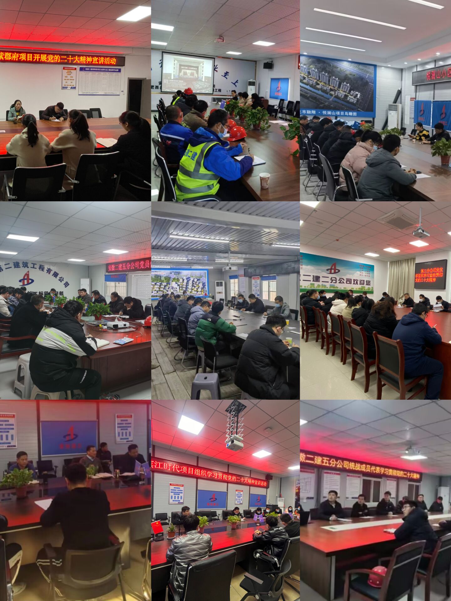 安徽二建公司党委紧紧围绕党的二十大精神开展宣贯教育和系列活动,把学习宣传贯彻党的二十大精神作为当前和今后一个时期的首要政治任务,根据《关于开展党的二十大精神分众化宣讲的通知》要求,组建了党员代表、职工代表、统战成员代表、团员青年代表、劳模先进代表五类宣讲团。宣讲团通过线上线下联合开展大宣讲,截至目前宣讲18次,受众人数500余人。