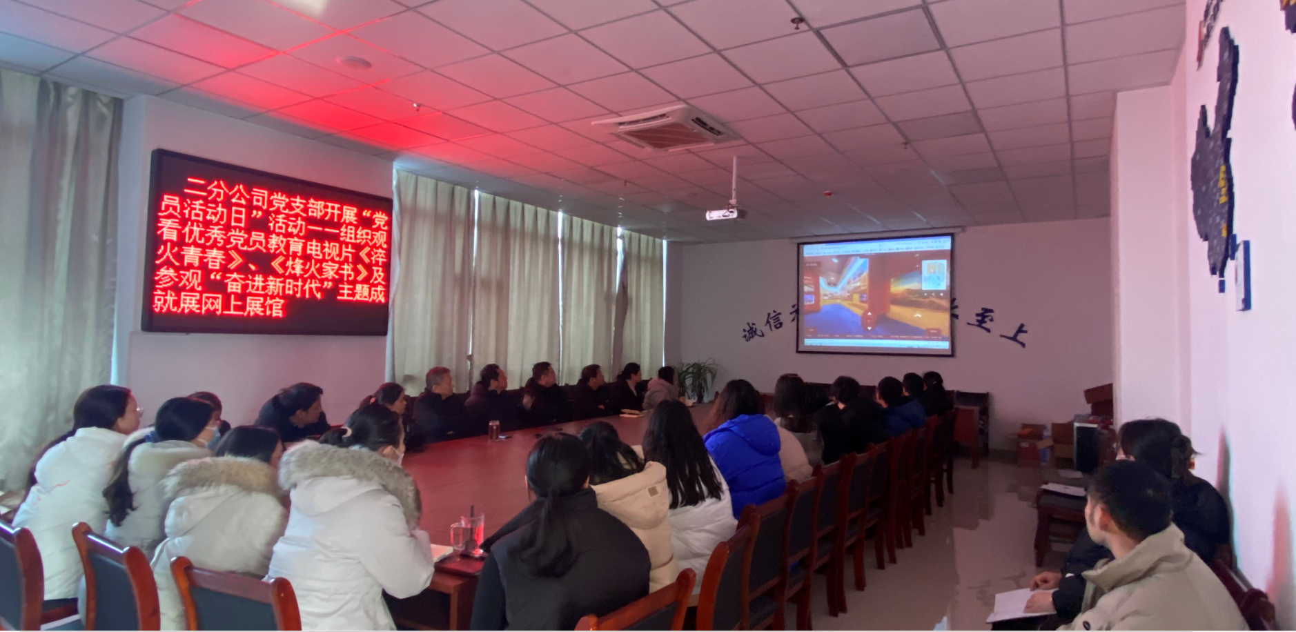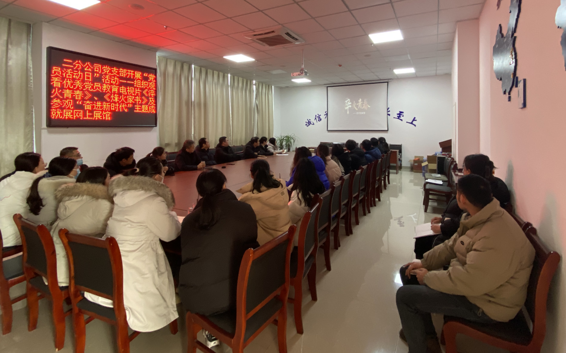 为深入学习贯彻党的二十大精神,学习安徽红色历史、学习身边先进典型,2月3日下午,第二分公司党支部开展“党员活动日”活动,组织机关党员干部及全体职工集中观看省委组织部优秀党员教育电视片《淬火青春》、《烽火家书》。分公司机关党员和管理人员共计25人参加会议。
