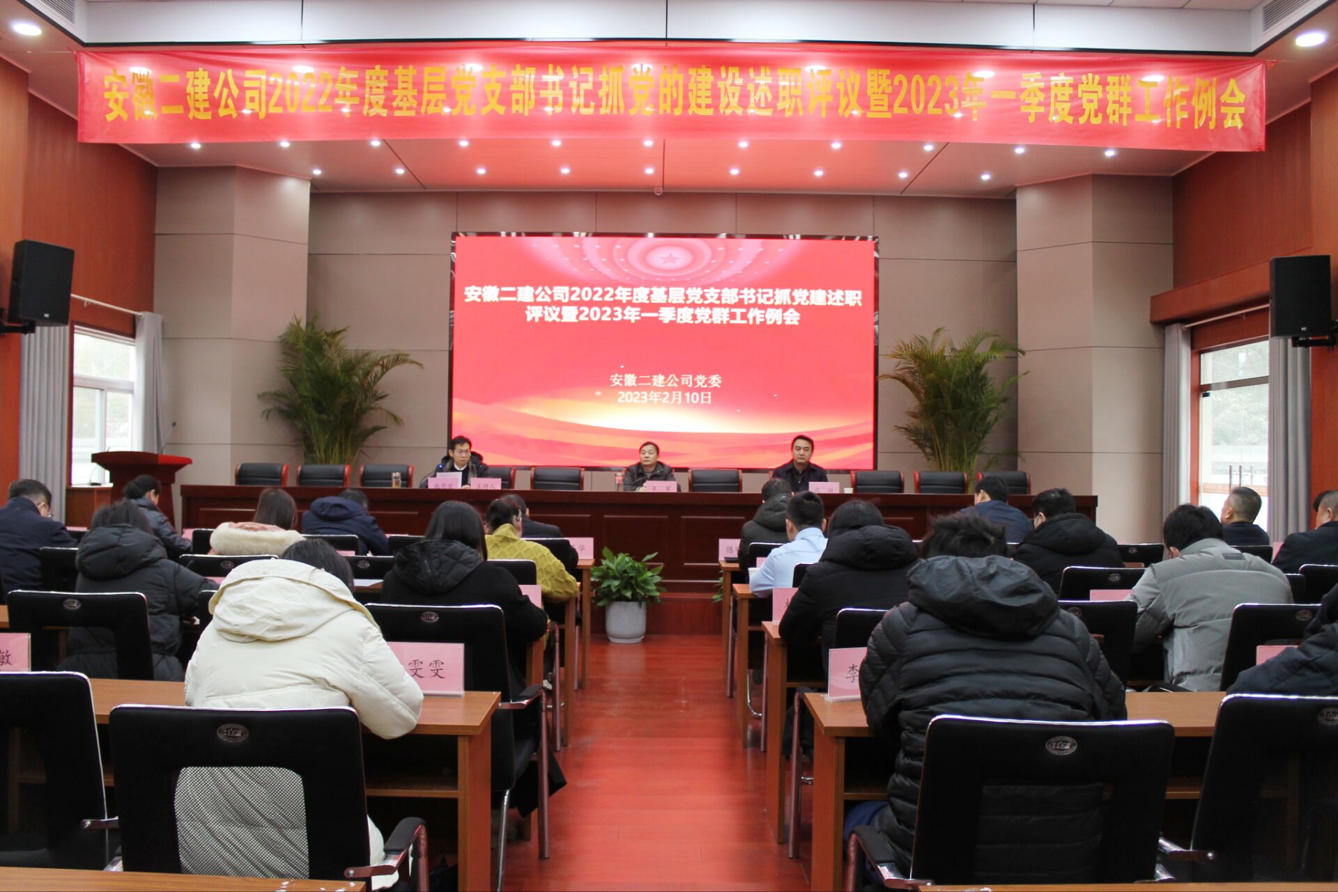 2月10日下午,安徽二建公司在新会议室召开2022年度基层党支部书记抓党的建设述职评议暨2023年一季度党群工作例会。党委副书记、工会主席王军,党委委员、纪委书记沈壮出席会议,党委工作部主任施用宏主持会议。