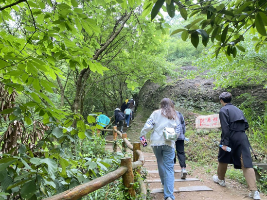 绿色健康毅行,再走革命路。为了切身体会革命先烈在大山之间的艰苦生活,团员青年进行了“再走革命路”健康毅行活动。一路上大家彼此帮助、相互鼓励,沿着蜿蜒的山路不断向上。历经2个多小时的跋涉,全体团员青年成功抵达山顶。立于山顶,长风扑面,放眼四望,巍巍群山尽收眼底,一时间,感叹祖国山河壮丽的自豪之情油然而生,大家情不自禁地吟出“会当凌绝顶,一览众山小”“江山如此多娇”等诗句,用最“纯情”的方式,向伟大祖国“告白”。