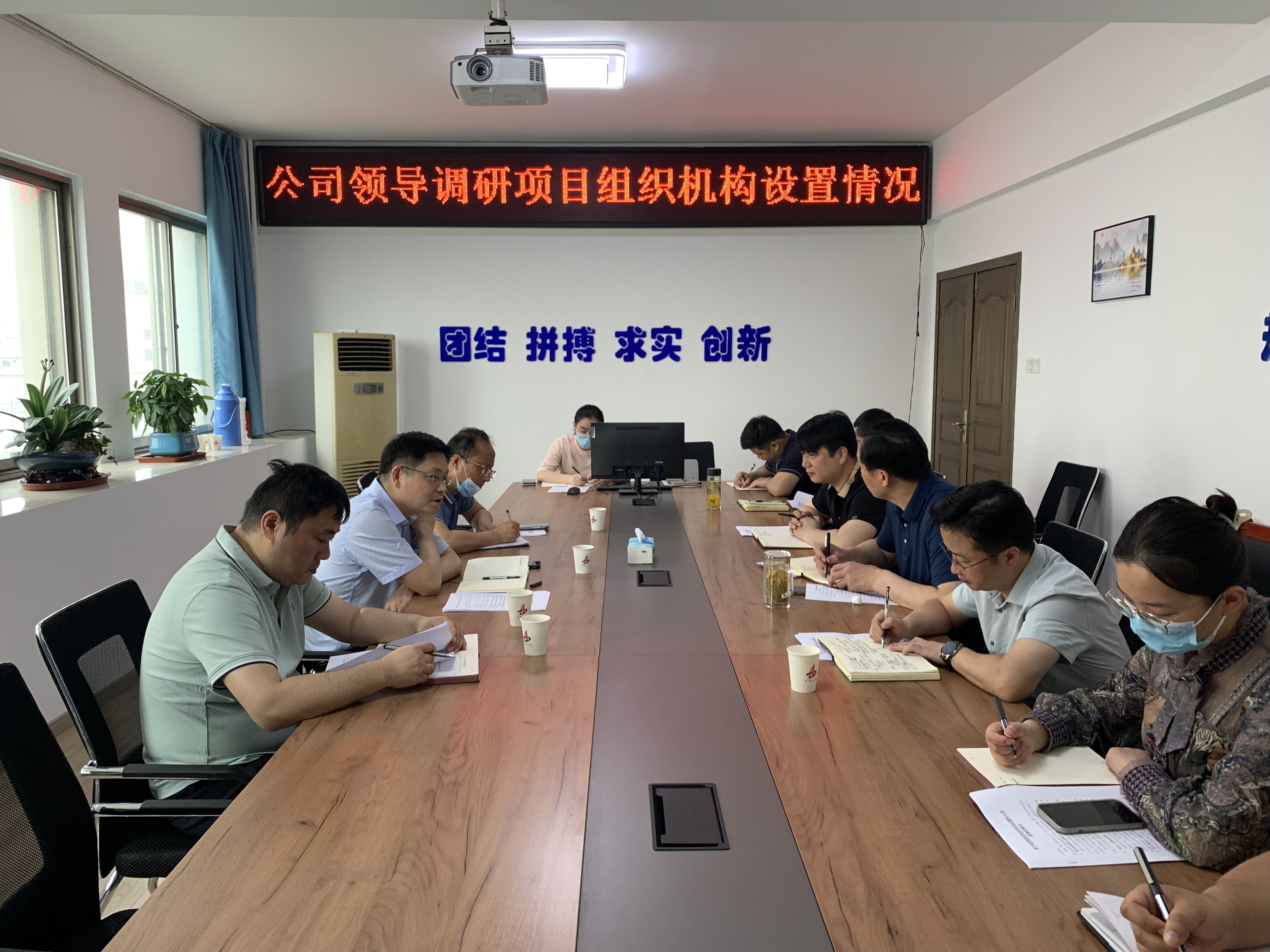 会上,叶和永说明了此次调研的目的,对项目机构设置情况进行了指导,他强调,一是提高思想认识,深入开展学习贯彻习近平新时代中国特色社会主义思想主题教育,加大对集团、公司、分公司制度的宣贯学习,做好思想引导,提能创效;二是要快速形成自查自纠工作,立即对不规范项进行整改;三是根据项目机构设置强化项目的动态管理;四是树立危机意识,落实到人,加强追责管理;五是加强防范化解风险意识,加大项目策划力度。