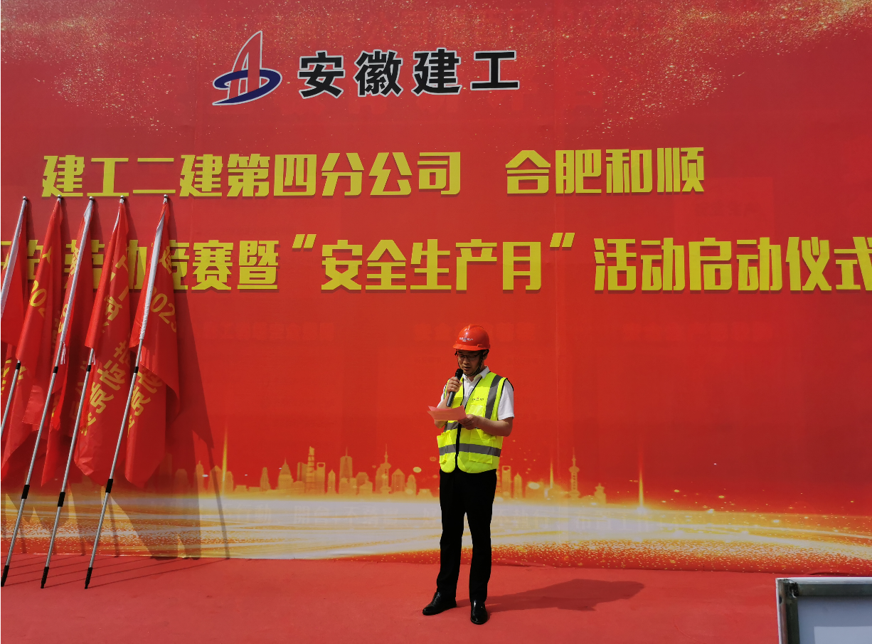 同心同向,聚力前行。6月6日上午,第四分公司2023年劳动竞赛暨“安全生产月”活动在肥西FX202234号地块项目部举行,合肥和顺总经理沈印、越秀地产项目总经理董大泽、第四分公司党支部副书记、经理潘泽强、分公司机关科室负责人、参赛项目经理、参赛项目安全员、肥西项目管理人员以及合肥和顺、越秀地产、广州监理相关领导等50余人出席活动。