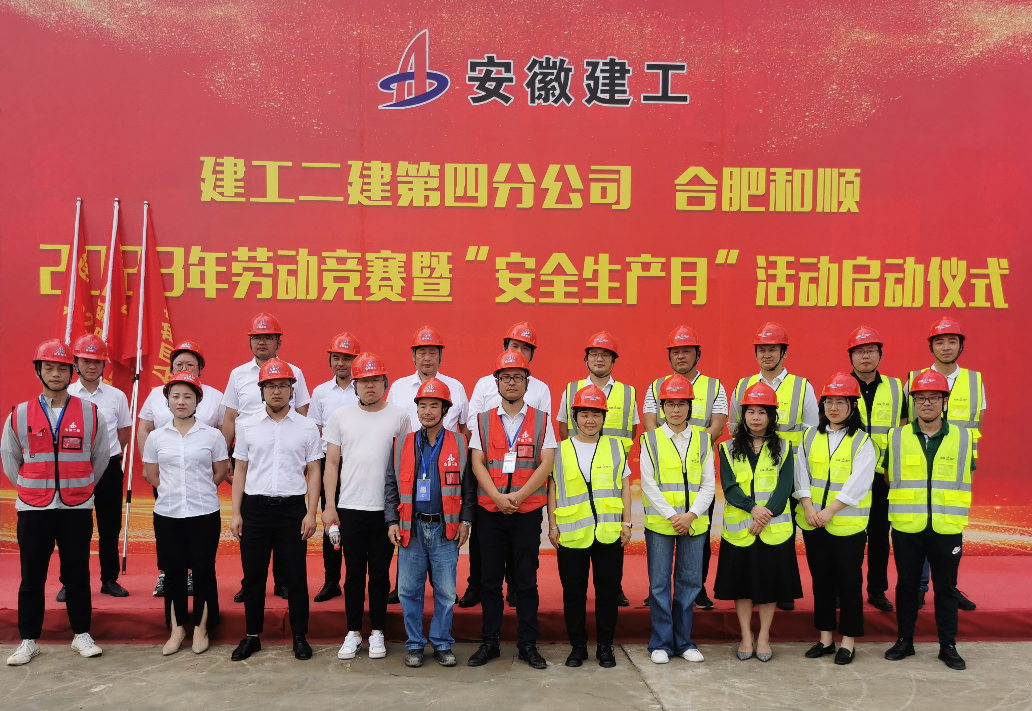 本次劳动竞赛旨在充分调动广大建设者的积极性,引导广大职工充分发挥劳模精神、劳动精神、工匠精神,安全、优质、高效地圆满完成施工任务。活动现场,第四分公司生产副经理周文建作动员讲话,合肥和顺总经理沈印、越秀地产项目总经理董大泽分别发言,第四分公司质量副经理刘韧宣读2023年劳动竞赛实施方案,参赛项目代表付奎表态发言,参加活动的领导为各参赛项目授旗。