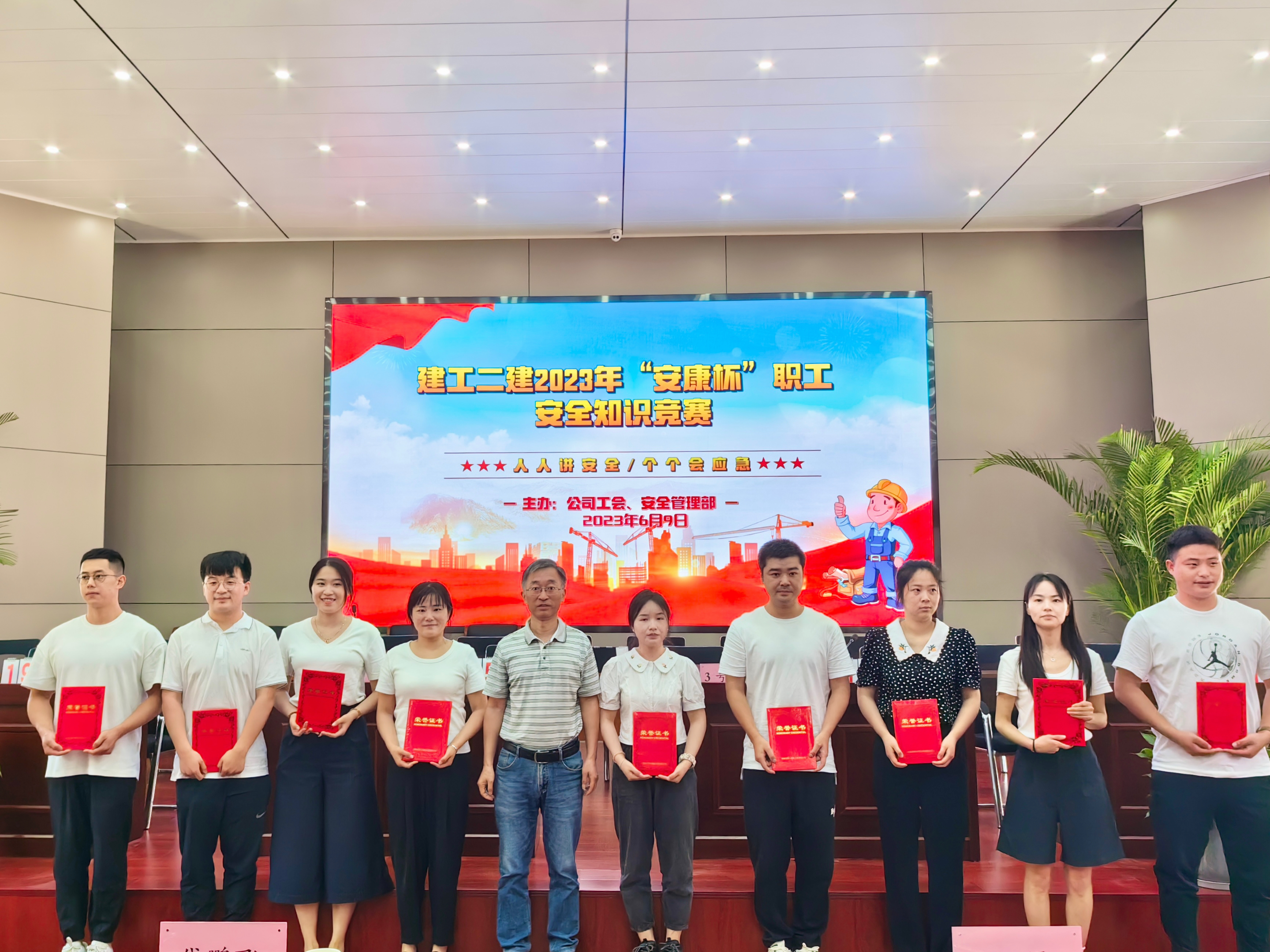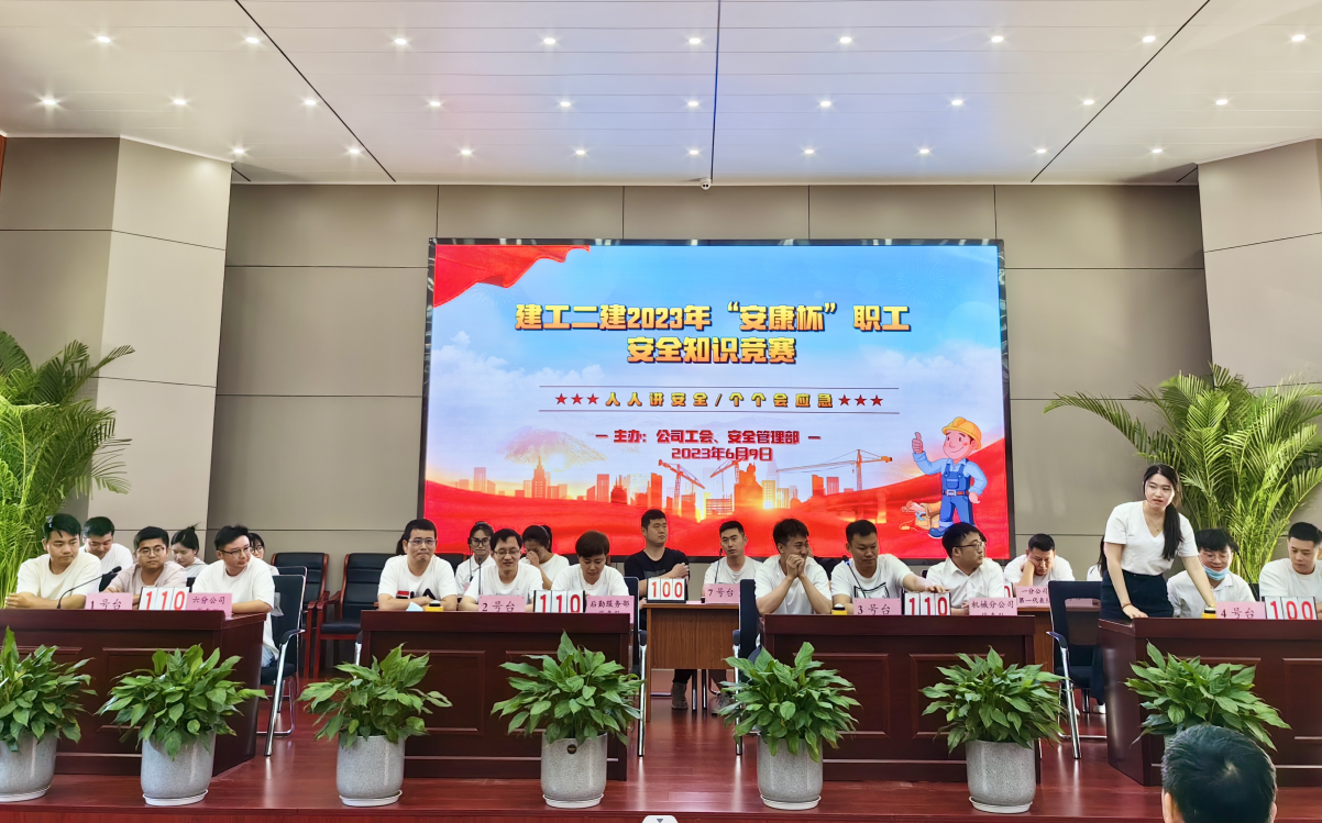 今年六月是第22个全国“安全生产月”,主题为“人人讲安全,个个会应急”。6月9日上午,公司工会牵头,与安全管理部联合举办了建工二建2023年“安康杯”职工安全生产知识竞赛活动。安全知识竞赛的开展,旨在通过以赛促学、以学促用,大力弘扬“生命至上、安全为天”的安全理念,加强安全知识宣传教育,切实增强广大职工安全生产意识和安全管理知识水平。公司党委副书记、工会主席王军,副总经理代鹏飞出席活动。