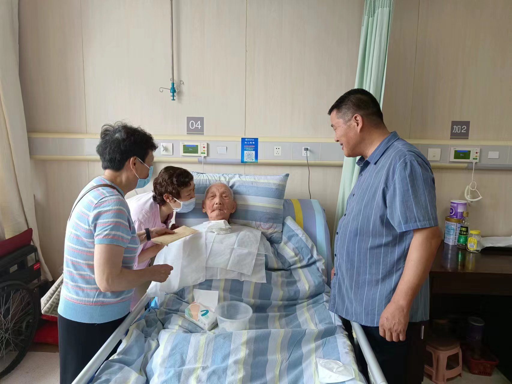 为庆祝中国共产党成立102周年,6月30日上午,后勤综合服务部主任钱能虎一行前往医院看望慰问建工二建离休老干部李辉同志。