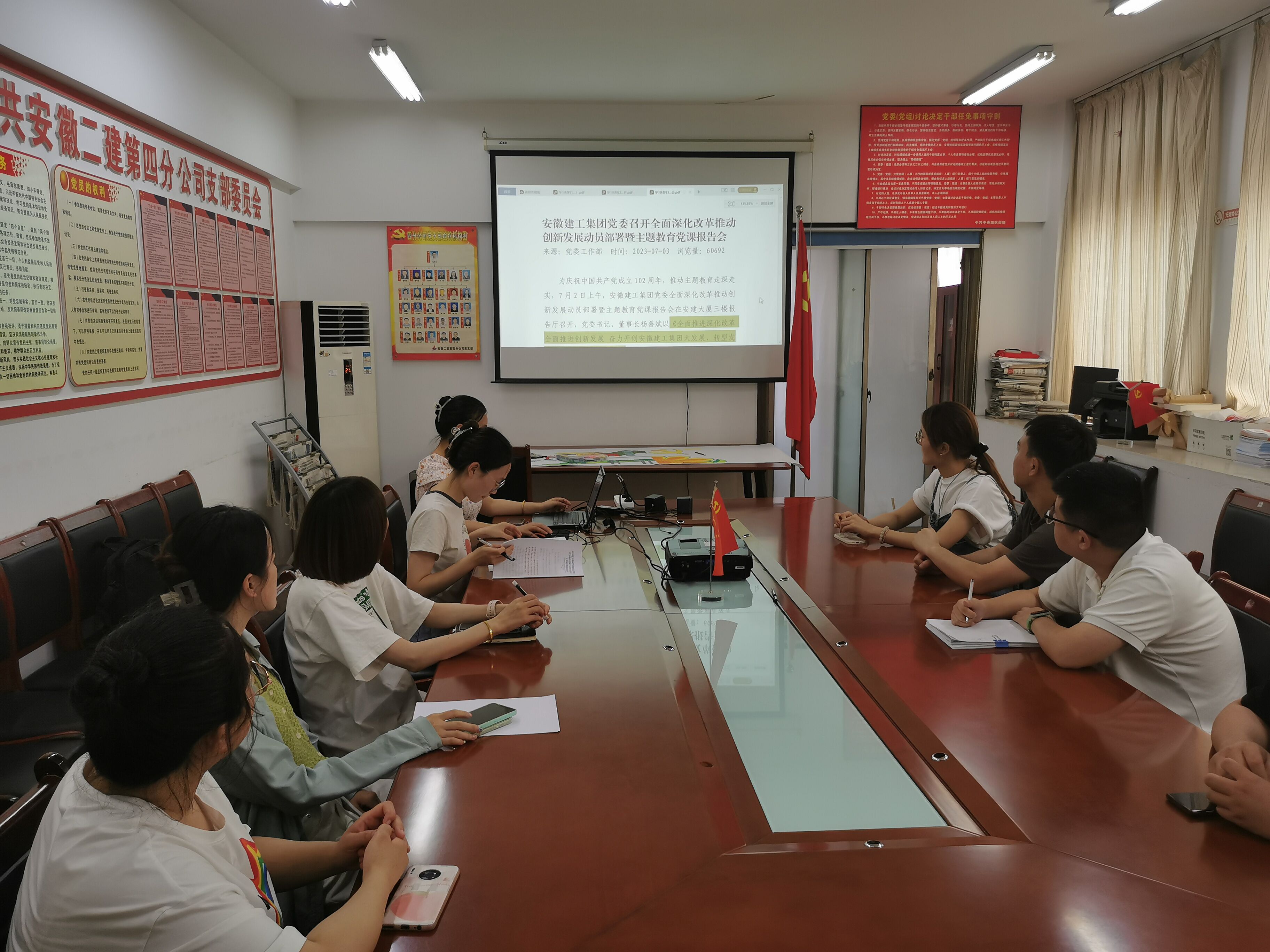 7月18日下午,建工二建第四公司团支部召开专题学习会,组织团员青年深入开展学习贯彻集团全面深化改革推动创新发展动员部署暨主题教育党课报告会会议精神。