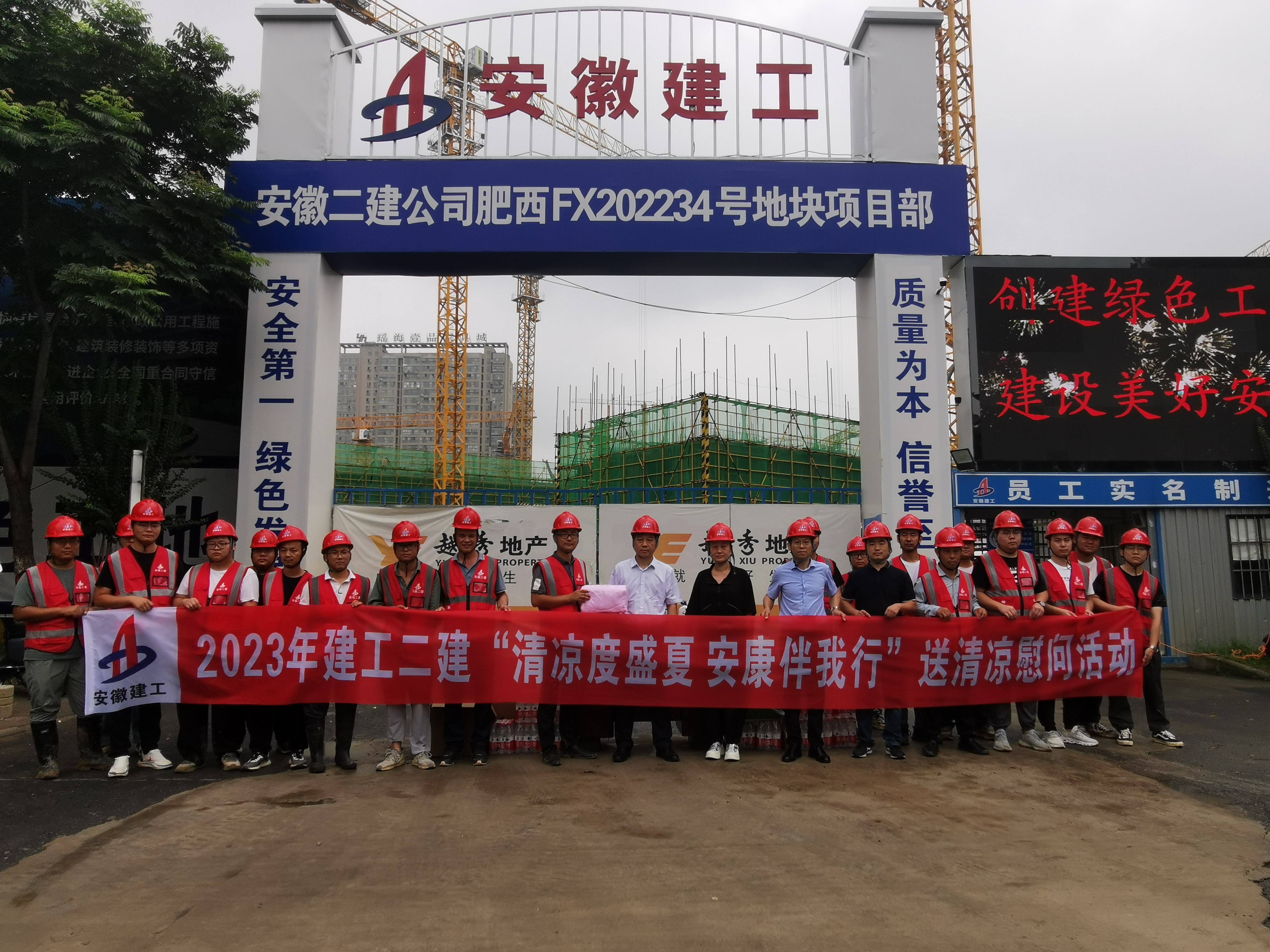 “三伏”季节,酷暑难耐。7月19日上午,建工二建党委副书记、总经理葛辉一行赴第四公司肥西FX202234#地块项目开展“送清凉”活动并指导工作。