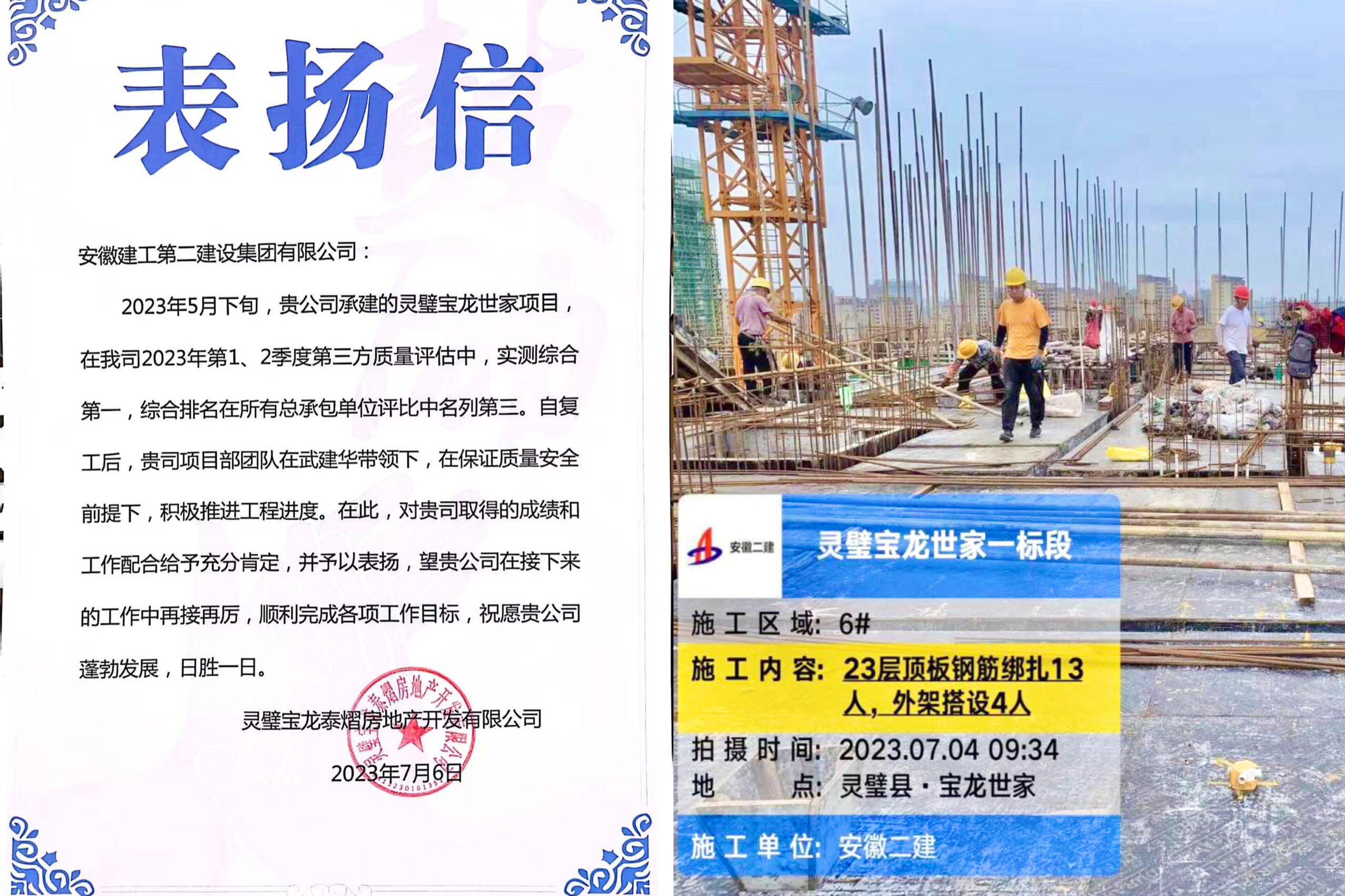 聚焦劳动竞赛党建引领,带出项目队伍“新气象”。在劳动竞赛实施过程中,项目部紧紧围绕竞赛目标开展“三号联创”,结合实际设立“党员先锋岗”“工人先锋队”和“青年突击队”,有效提升组织创造力、凝聚力和战斗力。在重点任务、关键节点和重要环节中,充分发挥“两个作用”,为项目建设提供“红色动力”。在宝龙集团今年一、二季度第三方质量评估中综合排名位列前三,项目部积极申报了省住建厅2023年“红色工地”试点项目,持续提升党建引领推动项目建设。
