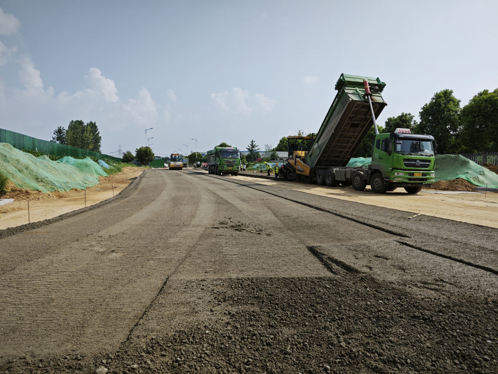 水稳试验段的顺利摊铺,标志着宿徐现代产业园市政道路路面施工正式拉开序幕,全体项目工作人员不畏酷暑,抓住当前道路施工的有利天气,稳妥推进道路建设,将施工任务落实到位,在保证安全生产的基础上,抢抓工期,全面推进项目劳动竞赛各项目标任务的完成。
