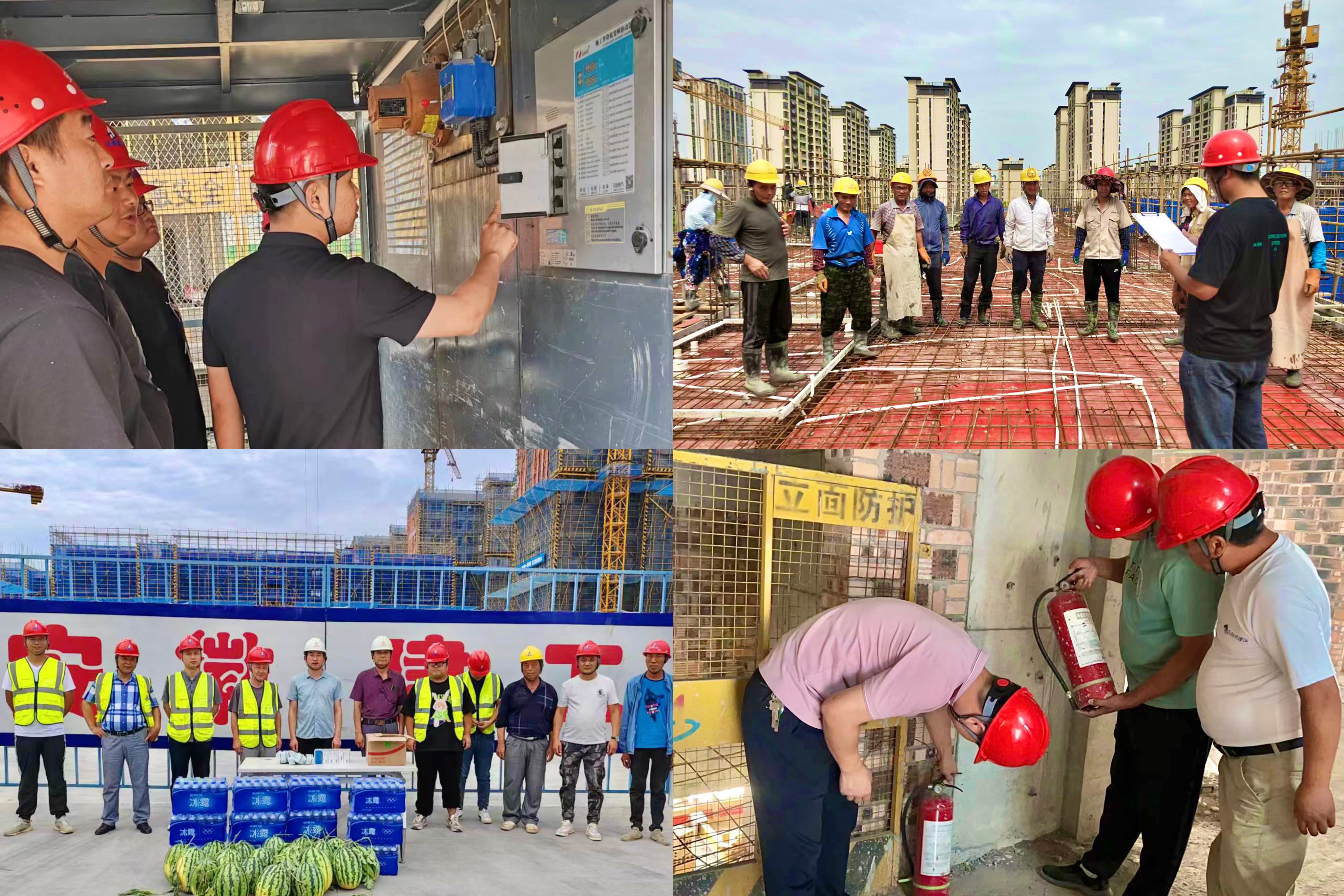进度管理上,现场21#主楼与23#主楼位于人防区域,筏板、墙柱钢筋复杂,工程量较大,项目部在7月酷暑炎热时期实行错峰作业,以防人员中暑,合理安排好生产和户外作业的时间,减轻劳动强度,准备了藿香正气液、清凉油等一系列防暑降温物品,为高温天气的一线工人带来丝丝凉意,也为安全生产提供了有利基础保障。通过错峰施工,组织班组多次加班加点,夜间加班混凝土浇筑、绑扎钢筋、回填土等,见缝插针组织施工生产,为推动竞赛施工进度、完成劳动竞赛目标不懈奋斗。
