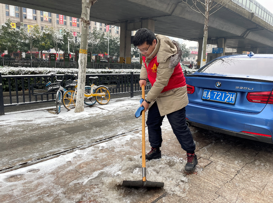 合肥迎来低温雨雪冰冻天气,城区多条道路“刷白”,给群众出行带来不便。2月5日,建工二建第四公司青年志愿者,以雪为令、迅速行动,开展扫雪除冰“大作战”,用一抹“志愿红”,温暖整个寒冬。