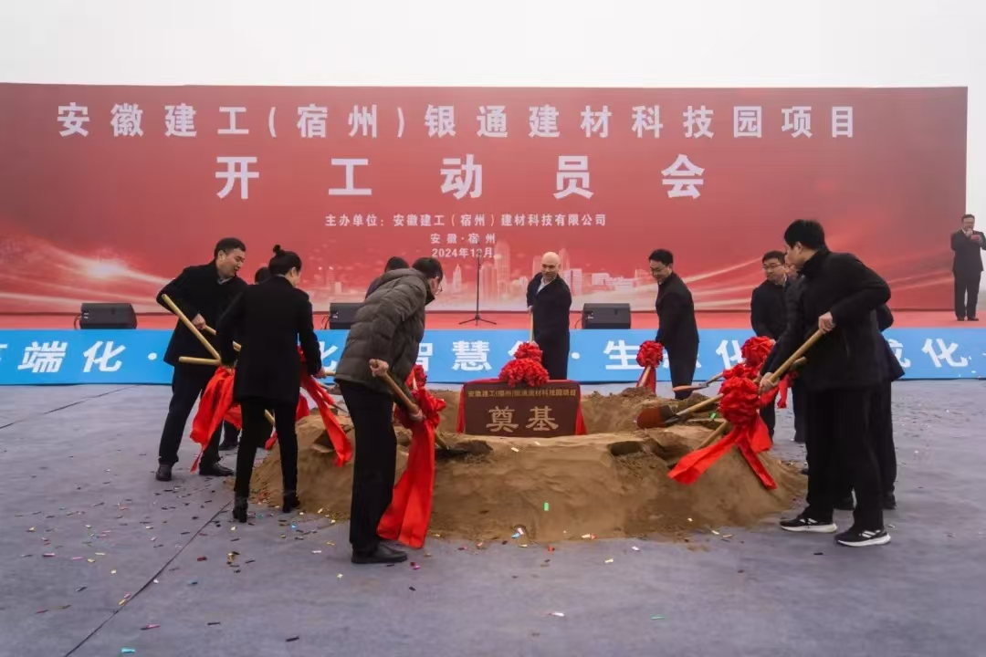 2024年12月6日,安徽建工承建的宿州银通建材科技园项目开工仪式隆重举行。建工股份党委委员、副总经理,公司党委书记、董事长朱忠明出席仪式并致辞。