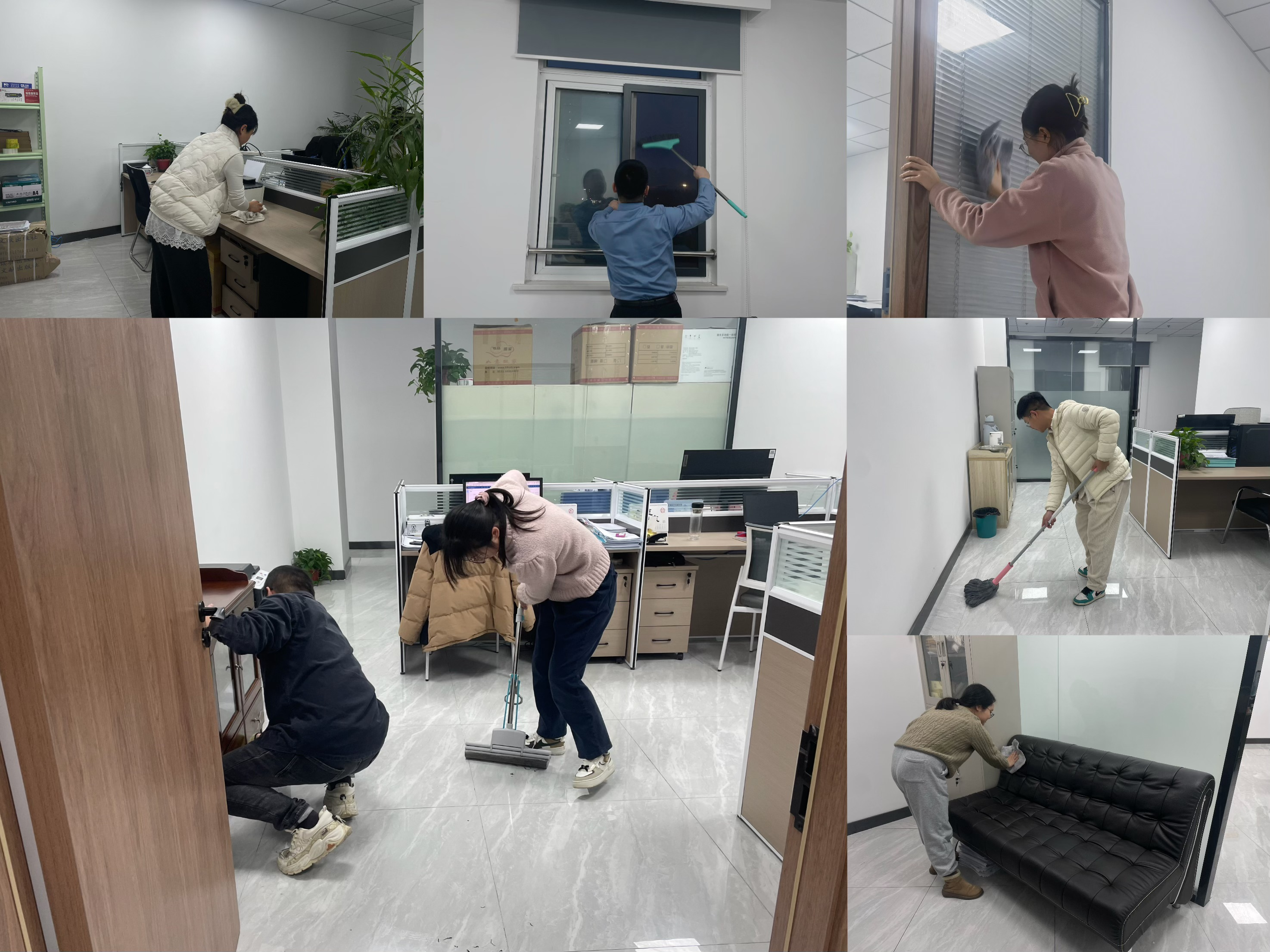 活动中,大家分工明确,配合默契。有的擦拭办公设备,有的清扫地面,有的分类整理办公用品、资料文件,还有的擦拭门窗,让窗户明亮通透,仿佛映照着新春的希望。经过众人共同努力,办公区域焕然一新。