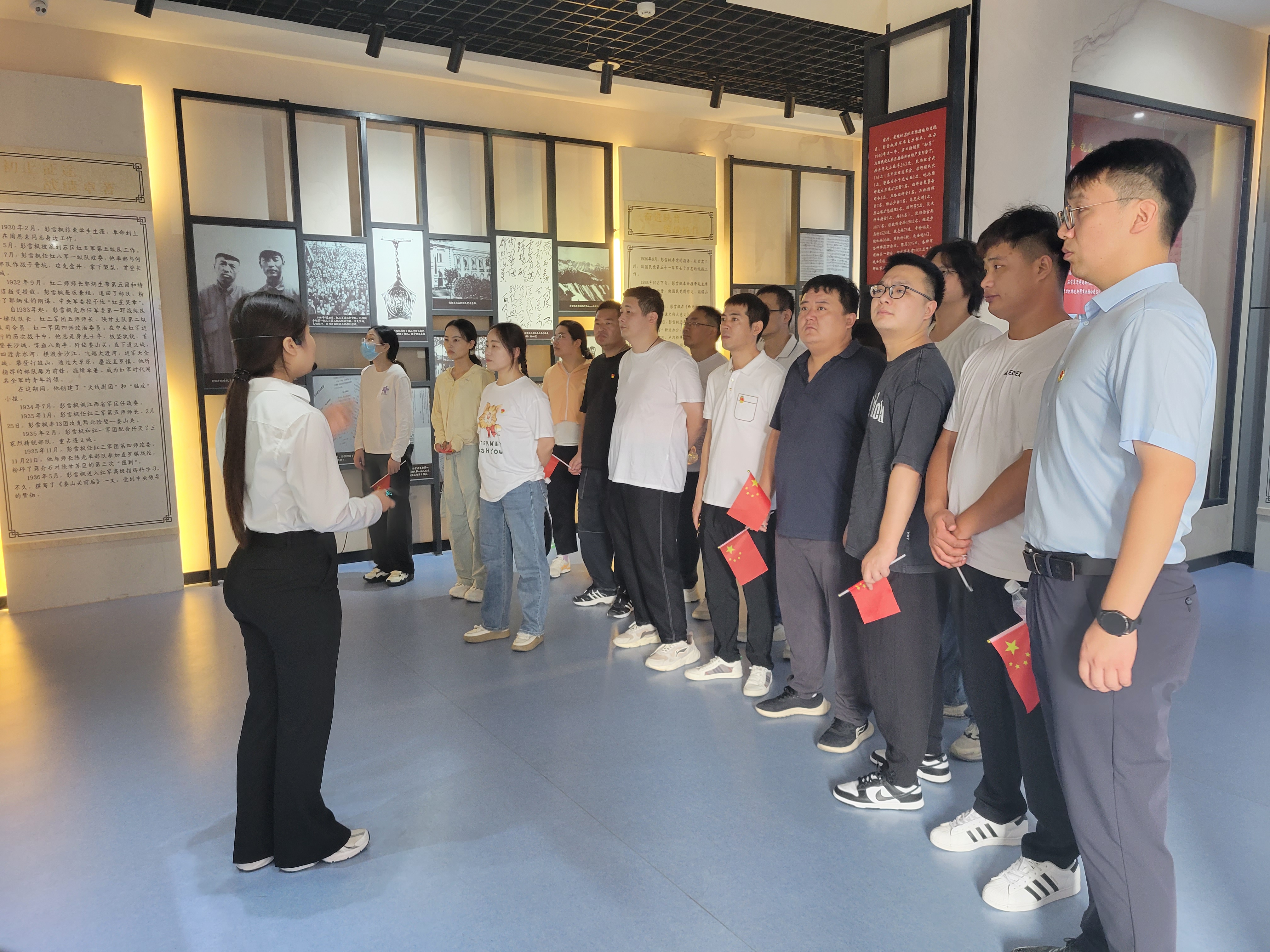 参加此次活动的党员、团员手持国旗从分公司徒步出发至雪枫烈士陵园,在彭雪枫纪念馆听取馆内讲解,了解革命历史,学习先烈的英雄事迹。参观结束后,分公司志愿者行进到烈士墓园,进行祭扫活动,向革命先烈致以最崇高的敬意。