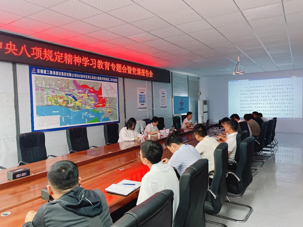 近日,宿州投发机关党支部书记徐晶晶一行先后赴S02徐商高速路基二标项目部、S02徐商高速路基一标二分部项目部,开展深入贯彻中央八项规定精神学习教育专题会暨党课报告会?;氐持Р渴榧切炀ЬЫ彩诘晨?,党支部委员陆冬领学相关内容,项目部全体职工参加会议。