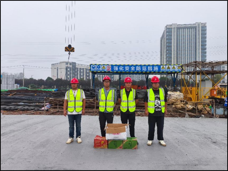 期间,项目部在严格落实方案到位、措施到位、监管到位,确保节日安全生产工作的同时。为让一线工友感受到企业的温暖,10月6日中秋佳节当天,项目部领导班子成员深入施工一线、各作业点位,看望慰问节日期间奋战一线的项目管理人员、农民工,送去精心准备的月饼,送上节日温暖和祝福,对他们的坚守及付出表达了最诚挚的感谢。