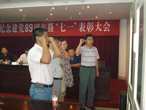7月1日下午,公司在三楼会议室,隆重召开纪念建党89周年暨“七一”表彰大会。会议在嘹亮国歌声中拉开了序幕,参加会议的有公司领导班子、基层领班班子成员、支委委员、受到表彰的党员等,共计70多人。会议由纪委书记李大坤同志主持。