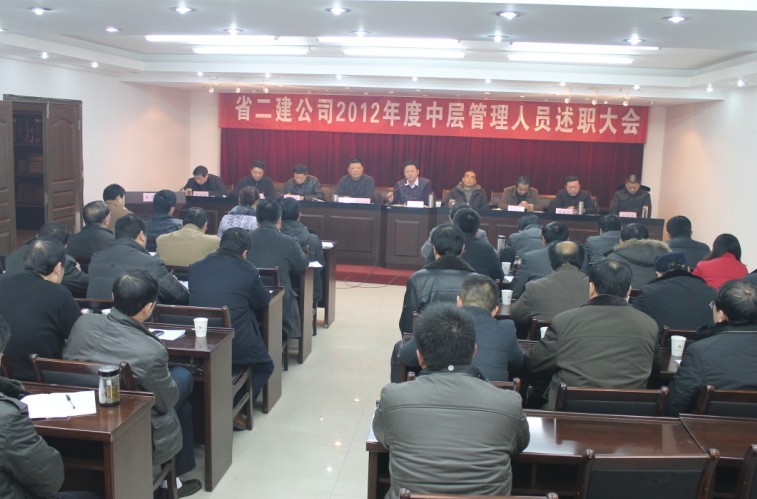 2012年12月29日上午,安徽二建在三楼会议室举行了2012年度机关中层管理人员述职测评大会,机关29名中层管理人员进行了述职和民主测评。