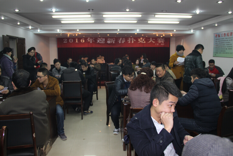 为了丰富职工业余生活,愉悦身心,增进相互间交流,2016年1月29日上午,公司工会在三楼会议室举办了2016年职工迎新春扑克牌比赛。比赛采用限时淘汰制方式,经过一系列激烈角逐,最终机械公司何斌、李国强获得冠军。