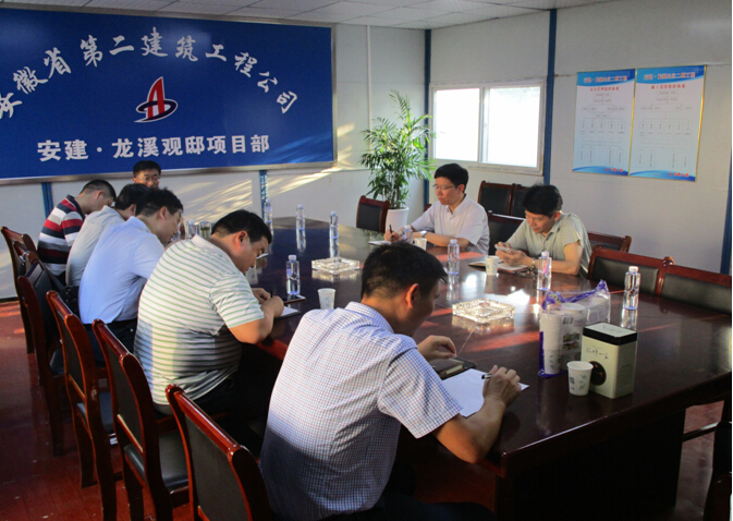 在随后召开的现场工作会上,王厚良副总经理对安建·龙溪山庄工程质量和目前所取得的成绩给予了充分肯定,对项目近期工作提出四点要求,一是要高标准、严要求,抓好现场安全文明施工和标准化施工,提高安徽建工集团在当地的影响力;二是要高度重视安全质量,确保安全无事故,质量无缺陷;三是要强化目标责任制,充分调动全体员工的积极性;四是要加强人才培养,对青年人,工作上要交真本领,业务上要经常开展技能培训。