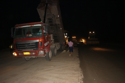 白天,烈日炎炎,骄阳似火,当大多数人对室外的高温望而却步,躲在空调房内纳凉避暑之时,却有这样一群可敬的人顶着烈日、冒着酷暑,挥汗如雨,在高温的“烤”验下仍坚守岗位。他们平凡无奇,对高温也并非有特别的忍耐力,只因身上肩负着“一流建工梦”的担子,让他们坚持着。夜晚,为了推进太和ppp项目建设工期进度,照样加班加点的干。夜晚九点多的施工现场,自卸车川流不息,穿着橘黄色马甲的施工人员,挥舞着导流棒对来往车辆进行分流,工人正在铺装沥青,压路机来回压实,热火朝天。