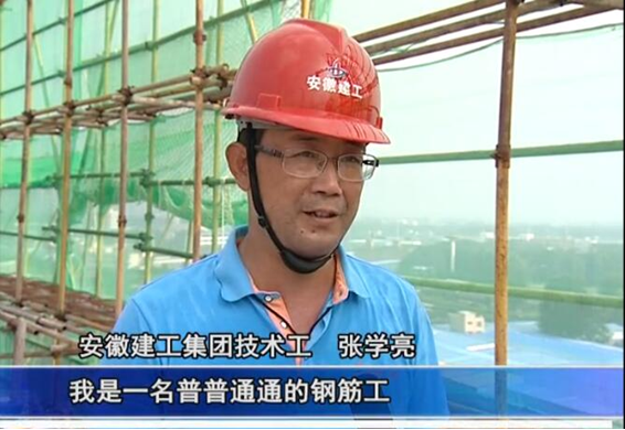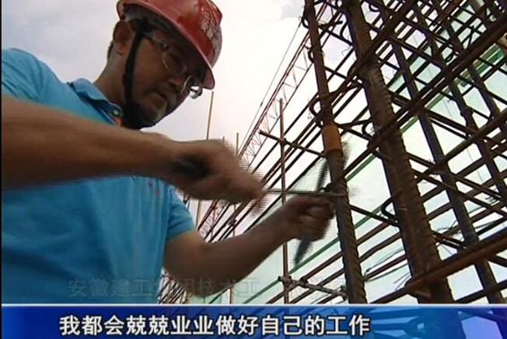 在商务楼十四层梁柱钢筋绑扎作业施工现场,项目部钢筋班组工人张学亮接受了电视台的采访,他向记者重点介绍了项目工程目前的施工进展情况、工作进度节点安排、夏季防暑降温工作安排和平时在工作中遇到的施工工艺上的重难点问题所做出的积极努力。