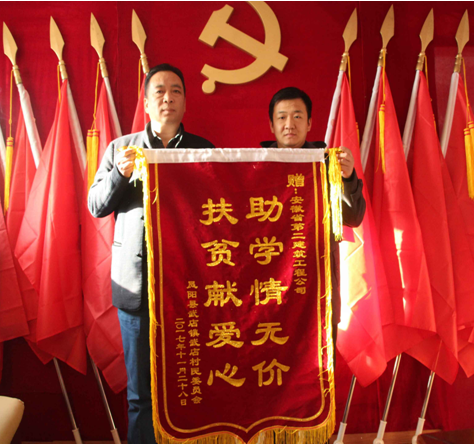 近日,安徽二建三分公司收到了凤阳县武店镇武店村民委员会送来的锦旗,感谢安徽二建对当地一名贫困大学生的资助。
