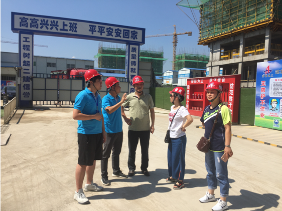 李主席一行到达施工现场,参观了工地,仔细询问了项目概况以及目前施工进度、质量、安全等方面情况,听取了项目工会主席创建“工人先锋号”汇报,对项目班子以“一流工作、一流服务、一流业绩、一流团队”为目标的创建活动给予了肯定,鼓励项目部继续完善,争创集团“工人先锋号”工程。