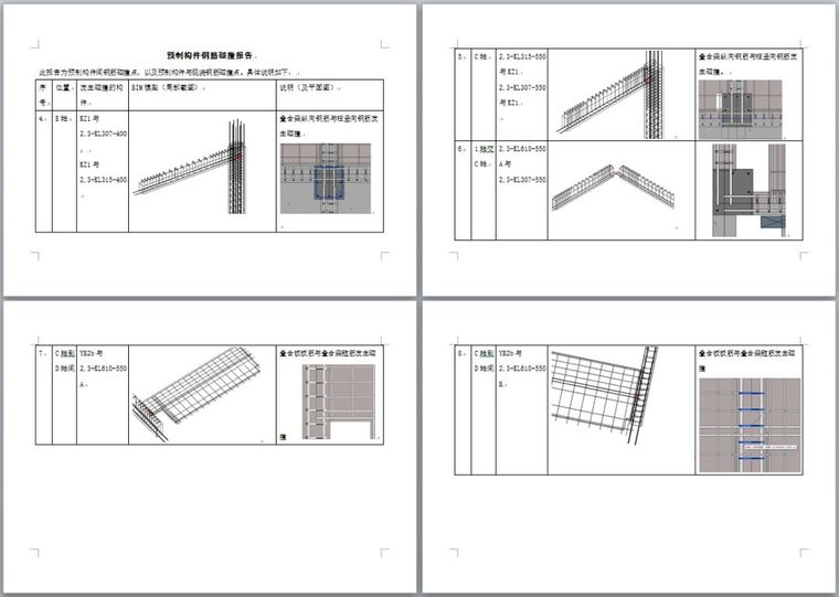 在目前国家大力发展的装配式建筑中,钢筋的碰撞尤为重要。在构件生产前期,利用BIM技术对构件进行钢筋碰撞,提前调整构件钢筋位置,避免现场安装发现问题,难以解决。在温州矮凳桥51号周转房装配式建筑项目中,BIM工程师在拿到二维的深化图纸后进行模型的搭建,经过检查发现了多处钢筋碰撞点,整理成报告提交给项目负责人。随后,BIM工程师根据项目负责人反馈的修改意见,对钢筋排布进行调整。