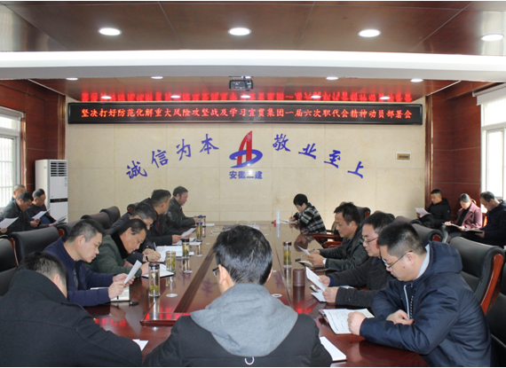 为深入学习贯彻习近平总书记在省部级主要领导干部坚持底线思维着力防范化解重大风险专题研讨班上的重要讲话精神及全省领导干部坚持底线思维着力防范化解重大风险专题培训班精神,坚决贯彻落实省委、省国资委党委、建工控股党委决策部署,3月8日上午,公司召开坚决打好防范化解重大风险攻坚战及学习宣贯集团一届六次职代会精神动员部署会。公司领导班子成员、机关各部门负责人、分公司党政主要负责人参加会议,党委副书记、纪委书记仇多维主持会议。