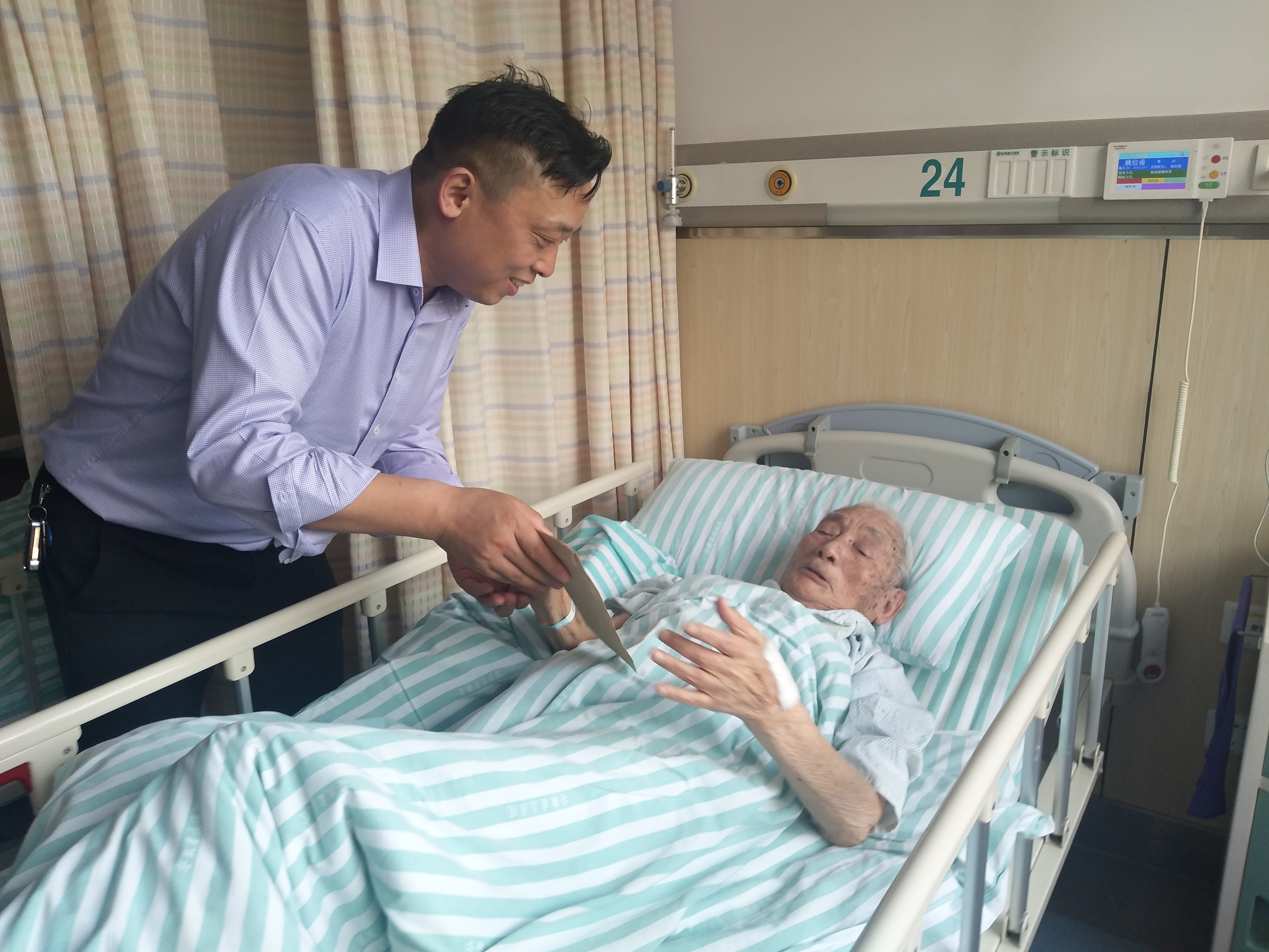 2019年4月18日,公司党委副书记、纪委书记仇多维在后勤综合服务支部书记王文虎、专职离休老干部工作者李小燕陪同下,赴安徽省立医院看望生病住院的离休老干部姚信甫。