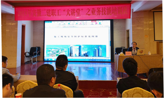 为提高项目管理人员业务技能和工作积极性,充分发挥在项目管理过程中监督检查、隐患排查治理、成本管控、物资设备管理等职能作用,4月27-28日,安徽二建公司在隆岗大酒店三楼会议室开展职工“大讲堂”业务技能培训,公司领导及相关部门、各专业管理人员等178人参加。