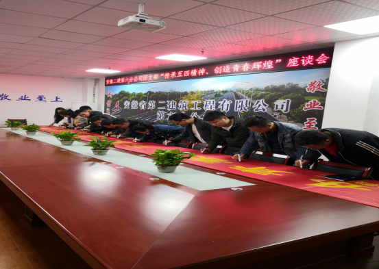 随后,团支部召开安徽二建六分公司“传承五四精神,创造青春辉煌”座谈会。