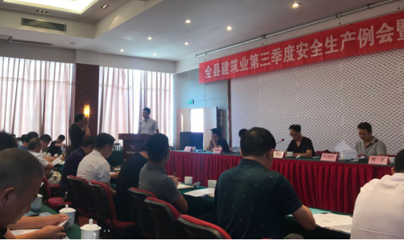 岳西县建筑业第三季度安全生产例会于2019年9月12日上午在天际大酒店召开,安徽二建一分公司承建的安徽润业国际电商产业园项目获评岳西县第三季度“最优工地”,项目经理王伟翔到会发言并参与交流。