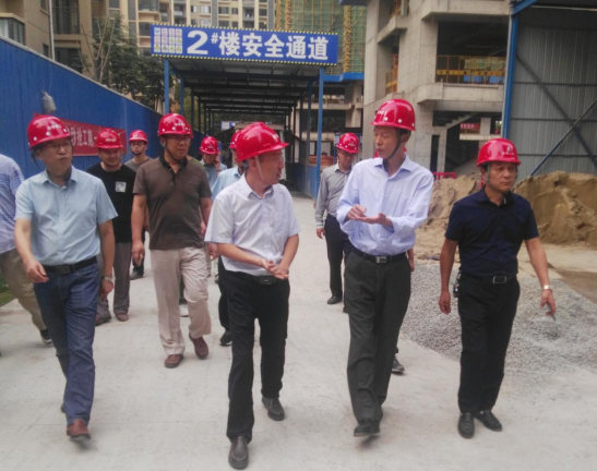 郭金友一行首先深入施工现场,分别察看施工现场道路、扬尘防治设备设施、高空作业安全防护、现场搅拌机械防护以及地材的质量管控措施,针对现场存在的问题给予指导并要求及时整改。