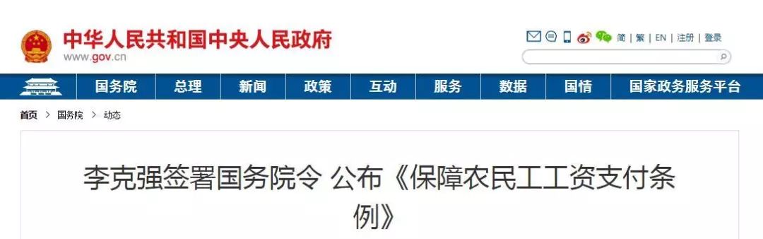 国务院总理李克强日前签署国务院令,公布《保障农民工工资支付条例》(以下简称《条例》),自2020年5月1日起施行。