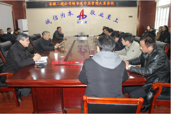 1月14日下午,安徽二建公司召开领导及中层管理人员会议,宣布安徽建工集团控股有限公司关于安徽二建公司领导班子调整的决定。建工控股党委工作部部长、建工股份党委副书记徐文联出席会议,公司领导班子、机关部门负责人、分公司党政主要领导参会。