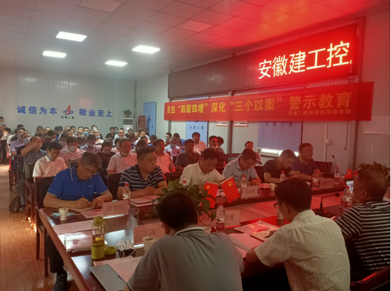 5月26日上午,建工控股党委委员、纪委书记宋志华等一行,深入安徽二建合肥丽丰璞羽西苑项目开展“三个以案”警示教育大宣讲、大调研、大督查活动,安徽二建领导班子成员及中层干部参加。