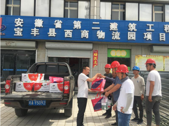 河南宝丰持续高温天气,为了确保建筑工人的身体健康,6月4日,宝丰县西商农产品(冷链)物流园有限公司副总经理黄盱为在炎炎夏日辛勤工作的项目管理人员以及一线班组送去了丝丝清凉。