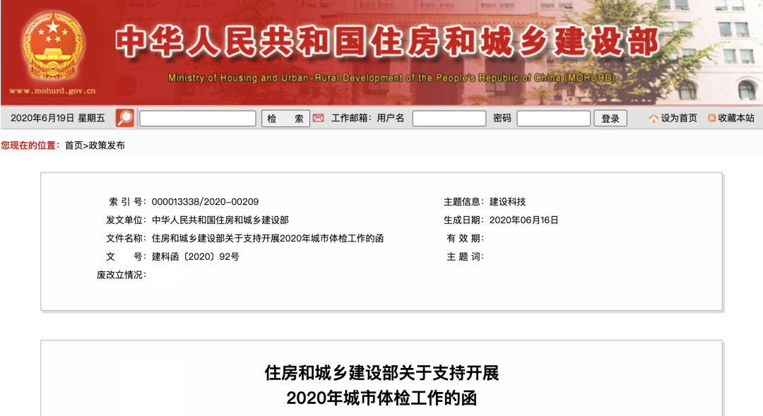 近日,住房和城乡建设部发布关于支持开展2020年城市体检工作的函。为贯彻落实习近平总书记关于建立“城市体检”评估机制的重要指示精神,推动建设没有“城市病”的城市,促进城市人居环境高质量发展,由清华大学中国城市研究院、中国科学院地理科学与资源研究所、中国城市规划设计研究院、中国城市规划协会等单位组成的第三方城市体检工作团队制定了《2020年城市体检工作方案》(以下简称《工作方案》),对部分城市开展城市体检工作。天津、上海、重庆、广州、武汉、哈尔滨、沈阳、成都、南京、西安、长春、济南、杭州、大连、厦门、石家庄、太原、呼和浩特、合肥、福州、郑州、长沙、南宁、海口、昆明、贵阳、兰州、银川、西宁、乌鲁木齐、洛阳、衢州、赣州、景德镇、黄石、遂宁(共36个)。采用2019年统计数据、遥感数据、社会大数据等,结合2020年城市建设防疫情补短板扩内需调研结果进行综合分析;通过线上问卷调查方式,对体检城市不同年龄段和不同职业的人群进行问卷调查,全面了解人民群众在疫情期间反映强烈的城市建设问题。综合主客观评价结果,找出存在的问题和短板,提出解决问题的建议,形成城市体检报告。城市体检内容包括生态宜居、健康舒适、安全韧性、交通便捷、风貌特色、整洁有序、多元包容、创新活力等8个方面。按照突出重点、群众关切、数据可得的原则,分类细化提出具体指标内容。反映城市的大气、水、绿地等各类生态环境要素保护情况,城市资源集约节约利用情况。反映城市社区服务设施、社区管理、社区建设的基本情况,城市居民健身场地设施建设情况。反映城市应对公共卫生事件、自然灾害、安全事故的风险防御水平和灾后快速恢复能力。反映城市交通系统整体水平,公共交通的通达性和便利性。反映城市对老年人、残疾人、低收入人群、外来务工人员等不同人群的包容度。在城市体检过程中,第三方将根据各城市的不同特点,选取特征性指标进行评估,反映差异化的特性。清华大学中国城市研究院。负责统筹第三方城市体检工作。承担开展第三方城市体检技术分析,完成第三方城市体检总报告和样本城市分报告。中国科学院地理科学与资源研究所。开展线上问卷调查,完成社会调查总报告和样本城市分报告。中国城市规划设计研究院(部遥感应用中心)。研发城市体检信息平台,为城市体检全面提供技术支撑。中国城市规划协会。配合住房和城乡建设部城市体检专家指导委员会日常工作。组织专家对样本城市的调研指导。建立地方技术机构支撑网络,开展技术指导和交流。