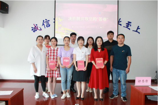 经过前期各支部层层部署、层层选拔,遴选出8名优秀选手参加此次微宣讲竞赛。结合省委宣传部和建工控股党委要求,微宣讲竞赛紧紧围绕“决胜全面小康、决战脱贫攻坚”主题,参赛选手精神饱满、声情并茂,以形象生动的事例宣讲习近平新时代中国特色社会主义思想,宣讲全面建成小康社会和脱贫攻坚的伟大历程、伟大成就、伟大经验,宣讲安徽全面建成小康社会和脱贫攻坚的特色经验、创新做法、实践成果等。现场气氛热烈、高潮迭起。宣讲结束后,公司团委书记龙姗姗进行点评,认为宣讲活动深入人心、实事求是,真实呈现在脱贫攻坚道路上全国人民的付出,坚定了打赢脱贫攻坚战的信心,同时鼓励青年职工要多参与公司开展的活动,提升自我勇担使命争做表率。随后,评委对获奖选手进行颁奖并合影。