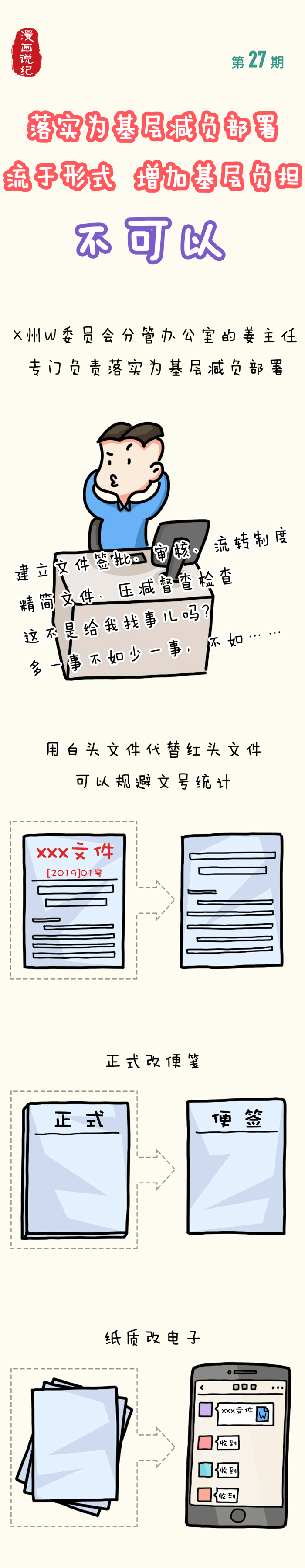 漫画说纪丨落实为基层减负部署流于形式 增加基层负担 不可以