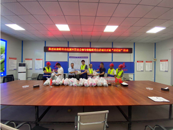 8月11日下午,蚌埠市高新区管委会韩永林,高新投资集团、高新建发公司总经理陈辉莅临安徽二建蚌埠山香安置房EPC项目开展“送清凉”活动,为项目送来了藿香正气水、绿豆、菊花茶、花露水等防暑降温物品。韩永林询问了生产进度、质量安全施工以及高温天气项目部采取的防暑降温措施等方面情况,同时要求,一定要确保高温天气下现场作业人员的安全,切实提高对一线作业职工的关心、关怀,避免 “非战斗减员”情况发生,把安全放在首位,做到安全文明施工。