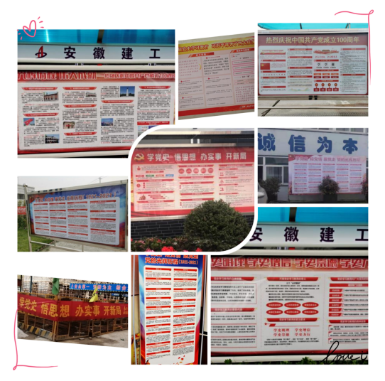 各项目部积极响应,经过项目自审、支部书记复核,一块块展版应运而生,将党史教育成果转化为干实事干成事的动力。