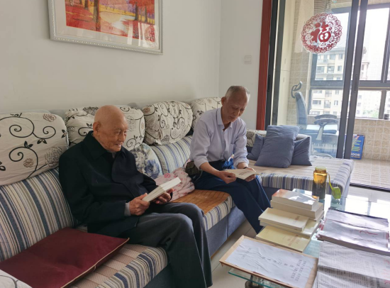 5月12日上午,后勤党支部书记王文虎一行前往103岁离休老干部李辉同志家中,送去庆祝建党100周年暨开展党史学习的学习文件以及《习近平谈治国理论》、《毛泽东、邓小平、江泽民、胡锦涛关于中国共产党历史论述摘篇》、《论中国共产党历史》、《人民日报》、《光明日报》、《安徽日报》、《安徽工人报》、《求实》、《江淮》等10种书籍、刊物。送去的精神食粮,老人愉快接收、感慨万分,老人结合自己1945年投奔新四军,参加抗日战争,1946年10月入党,参与解放战争以及社会主义建设的经验,述说共产党好、社会主义好,自己要认真学党史、悟思想,记住共产党的恩,永远心向党,并决心“永远跟党走”、“永远听党话”,过好自己的每一天,感谢党和企业的关心呵护!