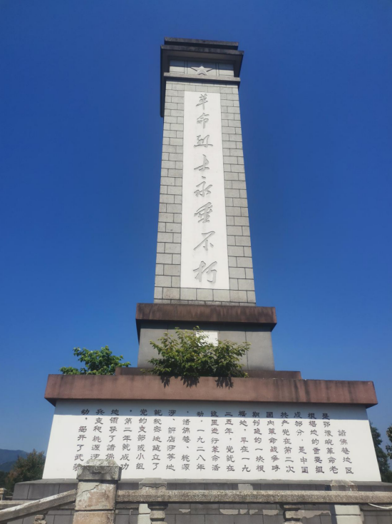 诸佛庵革命烈士纪念园位于集镇东侧,革命烈士纪念碑座落在集镇东侧的东阳山上,1979年11月由诸佛庵区委兴建。纪念碑高21米,四面分别书有毛体“星星之火,可以燎原”“革命烈士永垂不朽”“发扬革命传统”“争取更大光荣”醒目大字,碑身底座四周嵌有碑文,概述诸佛庵革命斗争史序,整个建筑构思凝重,肃穆壮观,已成为向人民群众进行爱国主义和革命传统教育的重要场所。淠西广场位于山下,整个广场呈三角形,分别为入口前区广场、绿色休息广场和中心广场。中心广场两把长枪雕塑记载着1929年诸佛庵兵变,在皖西向国民党反动派打响了第一枪,从而拉开了六霍起义的序幕。该雕塑淋漓尽致的体现了淠西广场孕育着红色文化的主题思想。