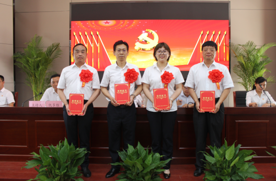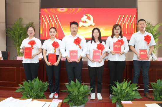 大会在《没有共产党就没有新中国》的歌声中拉开帷幕。公司党委副书记、总经理李建成宣读“两优一先”表彰文件,财务总监刘薇宣读“读党史、守初心、担使命”主题阅读演讲比赛获奖情况的通报,公司领导班子成员为受表彰的组织和个人颁发荣誉证书,受表彰先进基层党组织、优秀共产党员、优秀党务工作者代表进行了交流发言。随后,在仇多维的带领下,九名新党员进行入党宣誓,全体党员重温入党誓词。