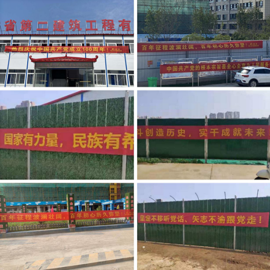 铸就百年辉煌,书写千秋伟业。为迎接中国共产党成立100周年,六分公司机关及所属项目部纷纷悬挂张贴了有关庆祝中国共产党成立100周年的标语,营造浓厚的宣传氛围,把党史学习教育进一步推向深入,大力营造“党的盛典、人民的节日”浓厚氛围,充分展示中国共产党百年光辉历程、伟大成就和宝贵经验,全面营造浓厚氛围, 共庆党的百年华诞,大力唱响共产党好、社会主义好,改革开放好、伟大祖国好、各族人民好的时代主旋律。