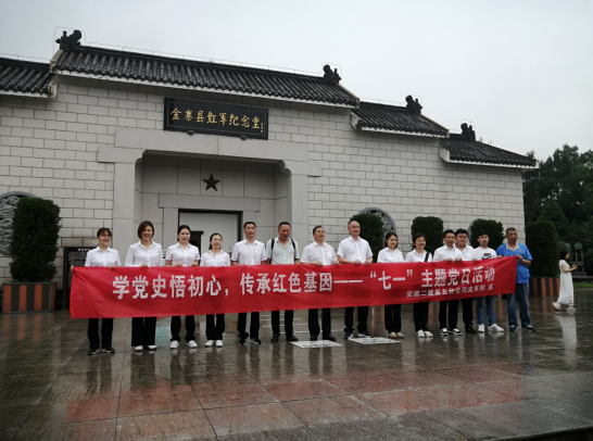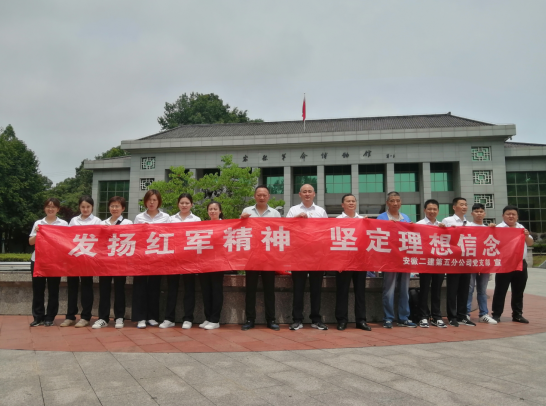 为纪念中国共产党成立100周年,重温党的光辉历程,歌颂党的伟大成就,进一步深化党史学习教育成果,根据安徽二建学习教育工作安排。7月6日,五分公司党支部组织党员及入党积极分子前往金寨县红色教育基地开展"学党史悟初心,传承红色基因"主题党日活动。