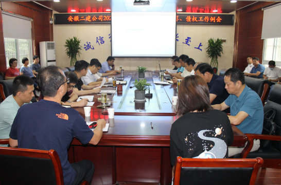8月10日上午,安徽二建公司召开安全、生产、决算、债权工作例会,会议由公司副总经理叶和永主持,公司总经理李建成、财务总监刘薇、副总经理费勤波出席会议。相关部门负责人、所属各单位负责人参加会议。